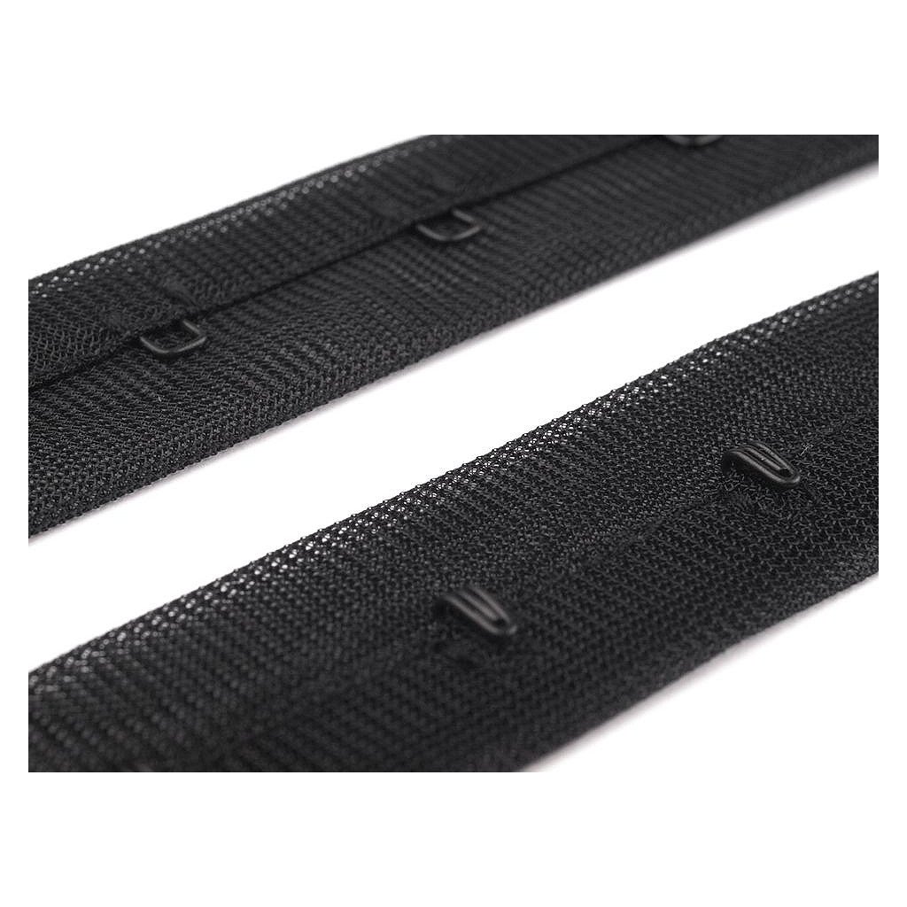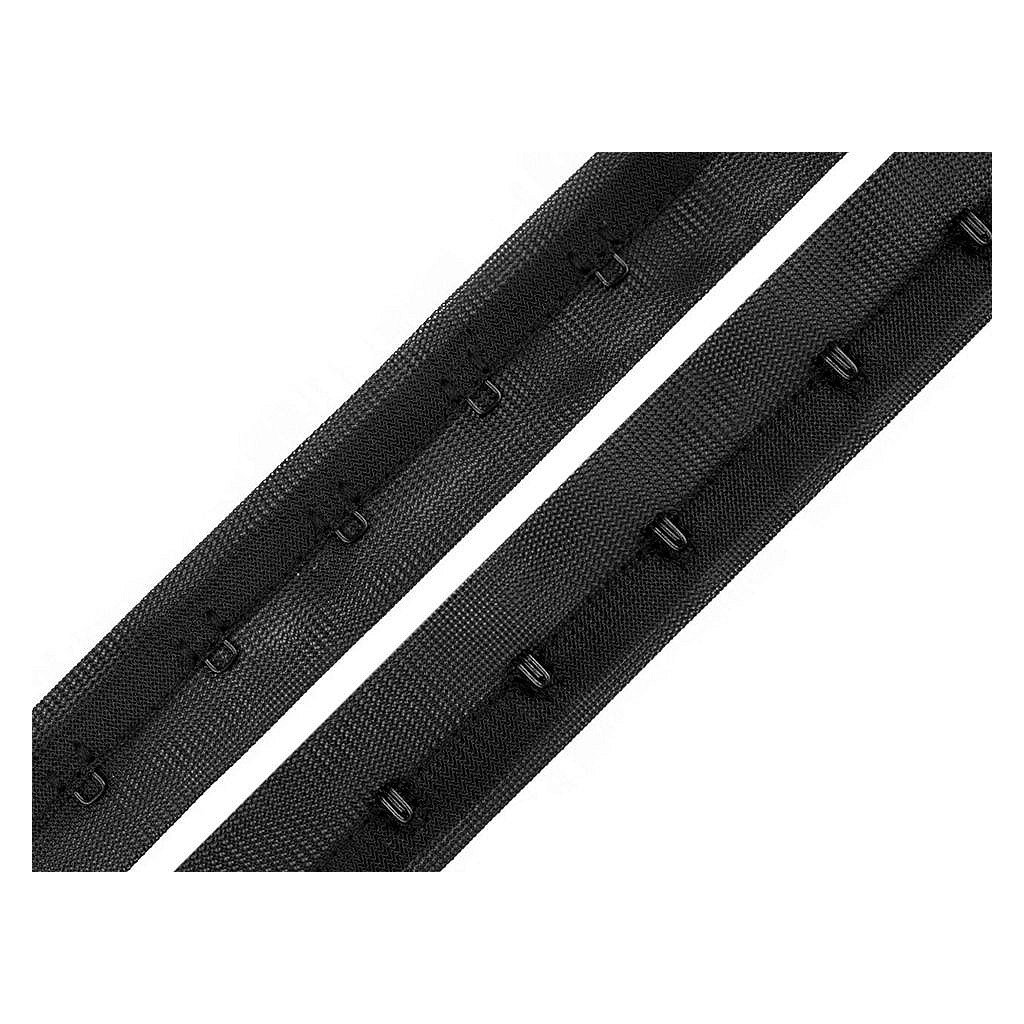 Korzetové zapínání je užitečný pomocník v textilní galanterii. Na kvalitním popruhu jsou pevně připevněné háčky. Balení obsahuje dvě cívky, které obsahují háčky a protikusy (vyrobeny z kovu s povrchovou úpravou odolávající praní).Háčky jsou od sebe vzdálené 2,5 cm.