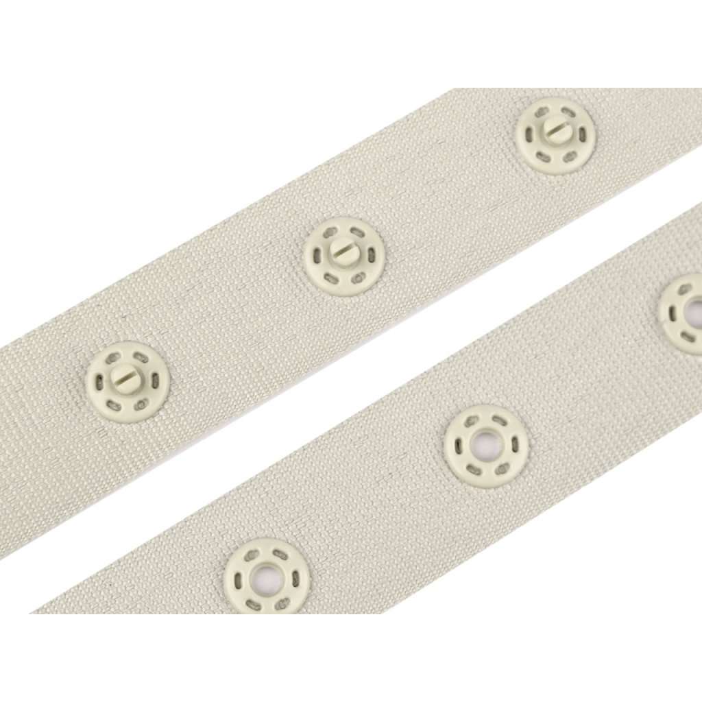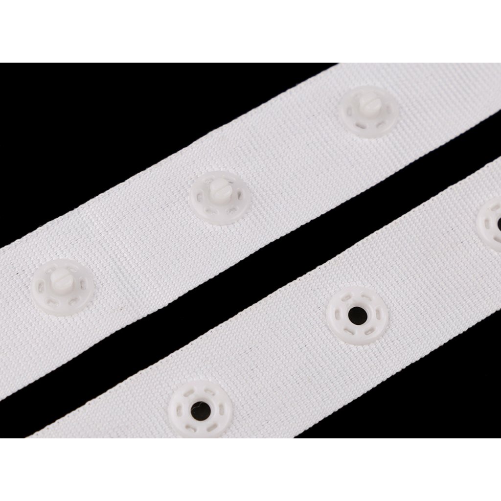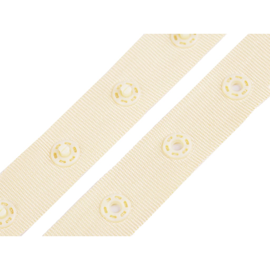 Užitečný pomocník v textilní galanterii. Na kvalitním popruhu jsou připevněny plastové druky. Tento typ stiskacích knoflíků na textilu je vhodný pro skrytá zapínání na oděvech. Balení obsahuje dvě cívky, obsahující kus a protikus.