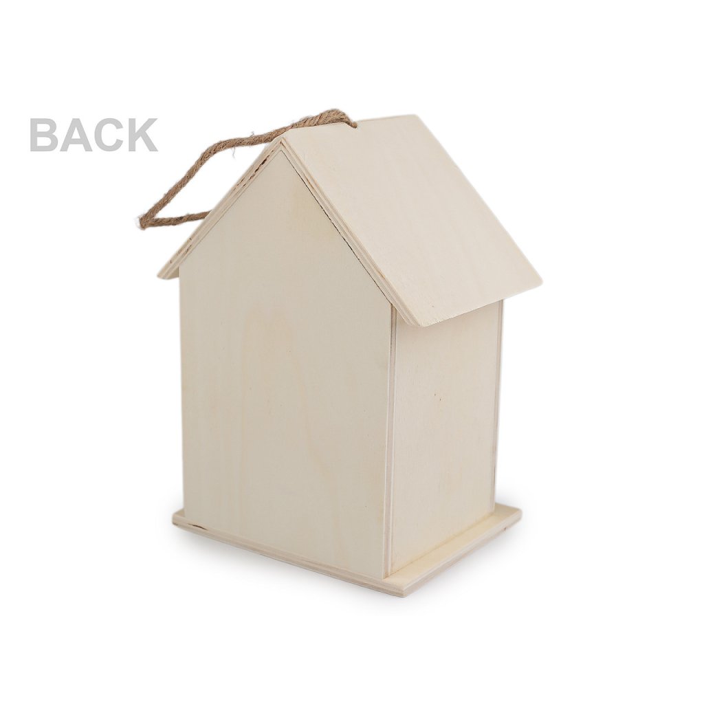 Dřevěný domeček / budka je ideálním doplňkem pro kreativní duše, které si chtějí vytvořit něco jedinečného. Ozdobí vaši terasu, balkón, kuchyň apod. Díky poutku ho kamkoli pověsíte. Dá se domalovat akrylovými či temperovými barvami, popisovači, glitrovými lepidly, barvami ve spreji aj.