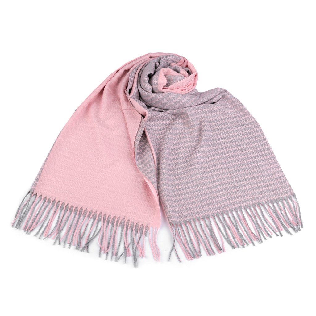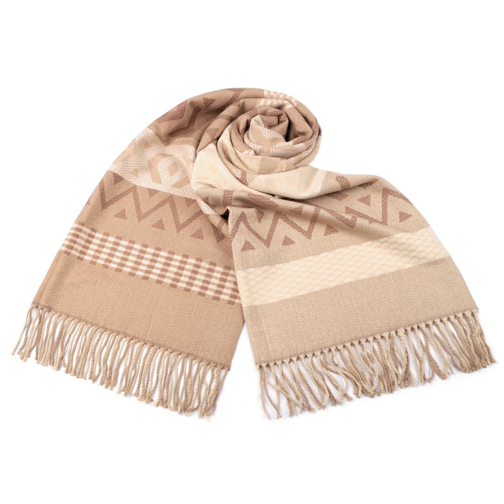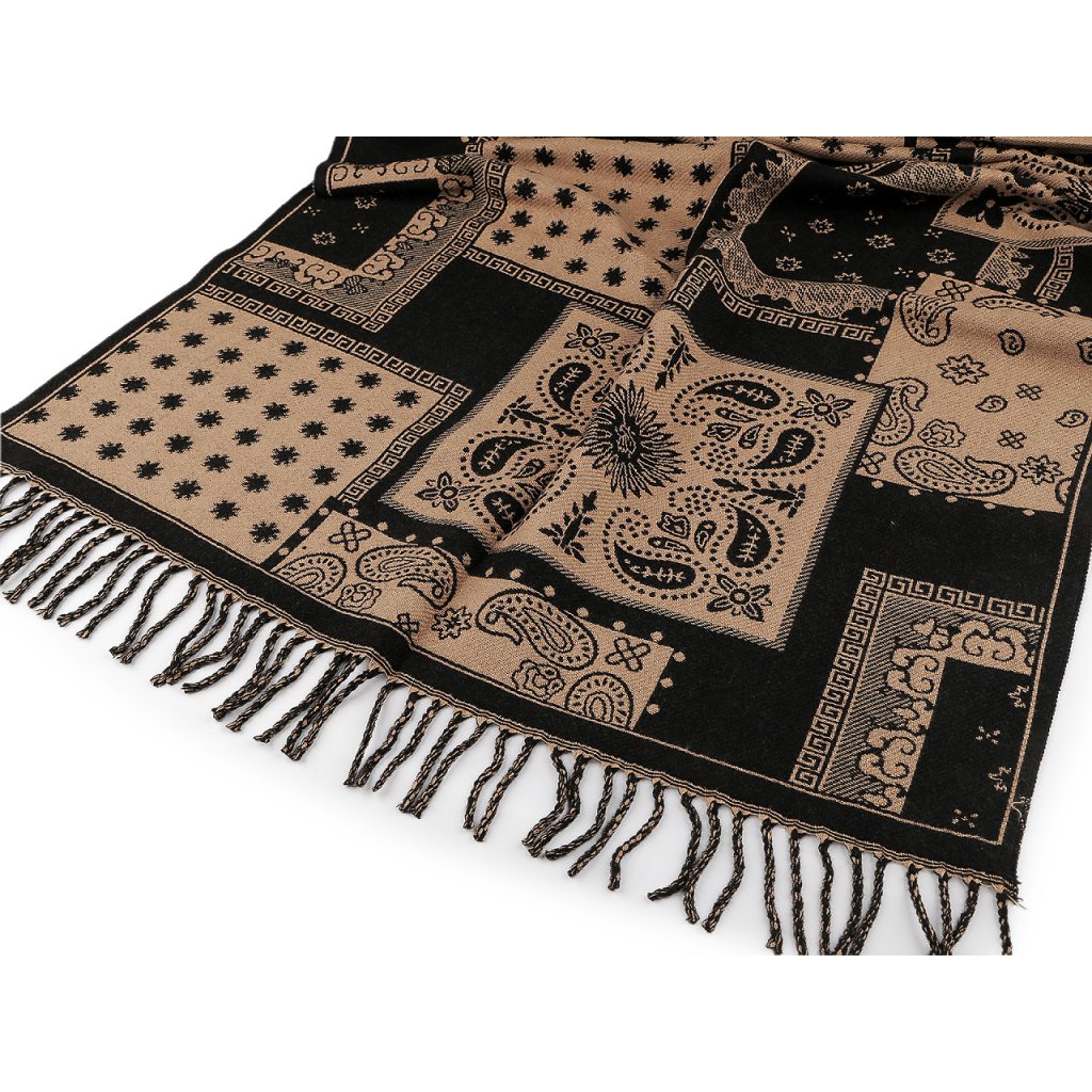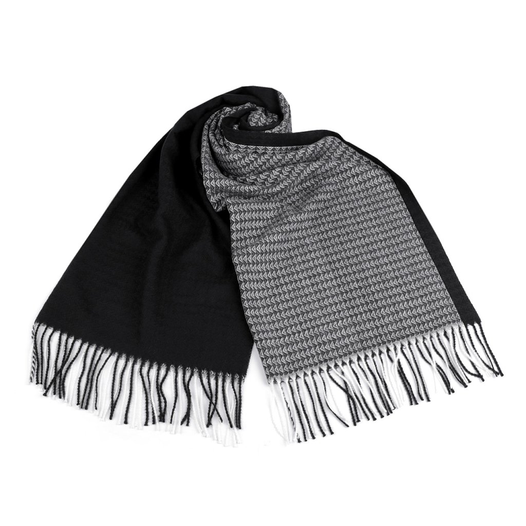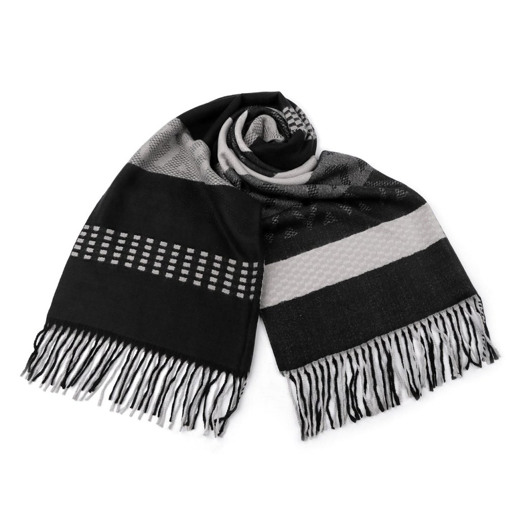 Oboustranná vzorovaná šála vás perfektně zahřeje v sychravých dnech. Je vyrobená z příjemně měkkého a jemného materiálu. Na koncích je zakončená dlouhými třásněmi.