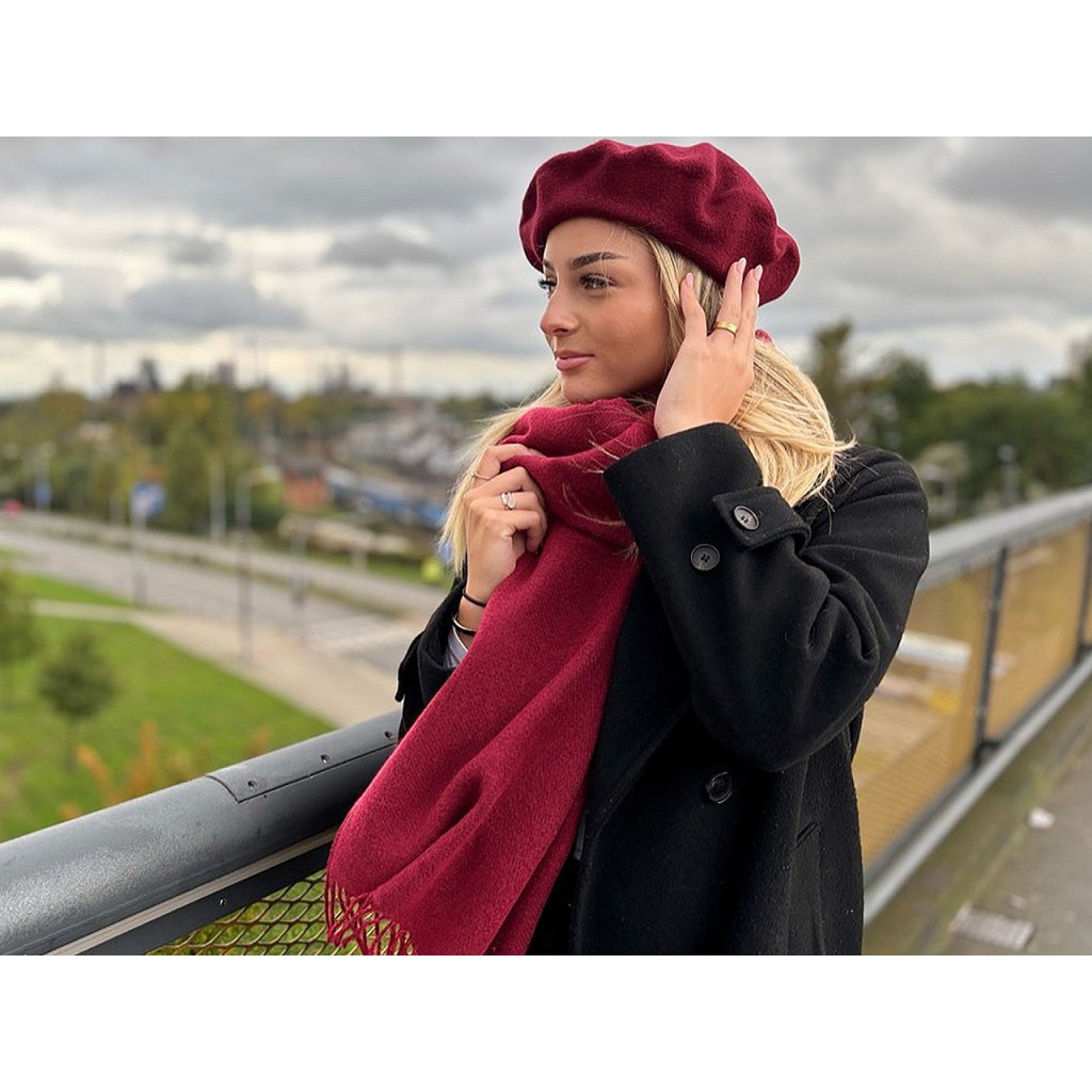 Jednobarevná šála nadchne příznivce jednoduchého stylu oblékání. Je oboustranná, ale druhá strana má jinou barvu. Komfortně vás zahřeje v sychravých dnech. Je vyrobená z materiálu příjemně hebkého na dotek. Hodí se ke kabátu, bundě i svetru. Univerzální barva je ideální pro kombinaci s různými styly, ať už preferujete elegantní či neformální vzhled. Na koncích je šála zakončená dlouhými třásněmi.