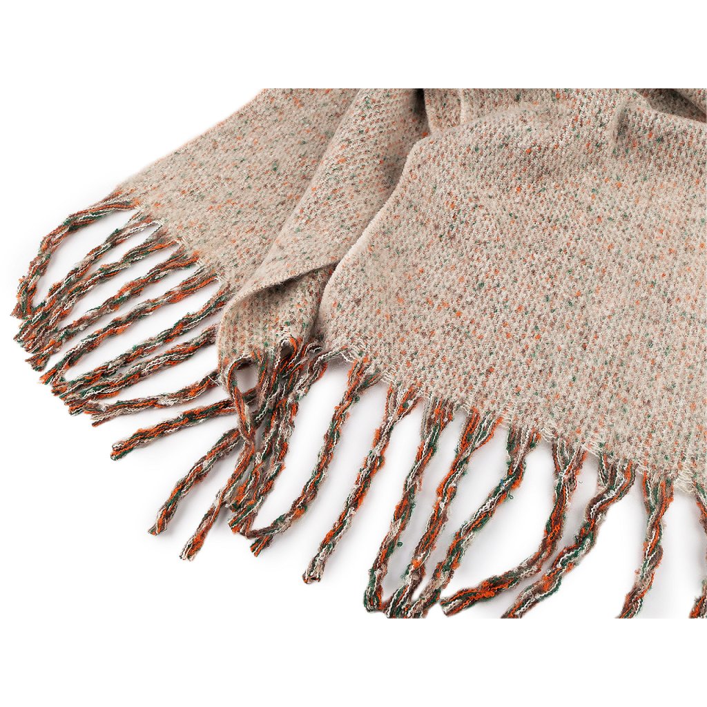 Měkká teplá šála představuje ideální zimní doplněk pro všechny, kteří touží po stylu a pohodlí. Je oboustranná, skvěle vás zahřeje v sychravých a studených dnech. Je vyrobená z příjemně hebkého materiálu s barevnou nopkovou strukturou, na koncích je zakončená dlouhými kroucenými třásněmi. Její univerzální charakter je ideální na běžné nošení, přinese vám pohodlí v každé situaci.