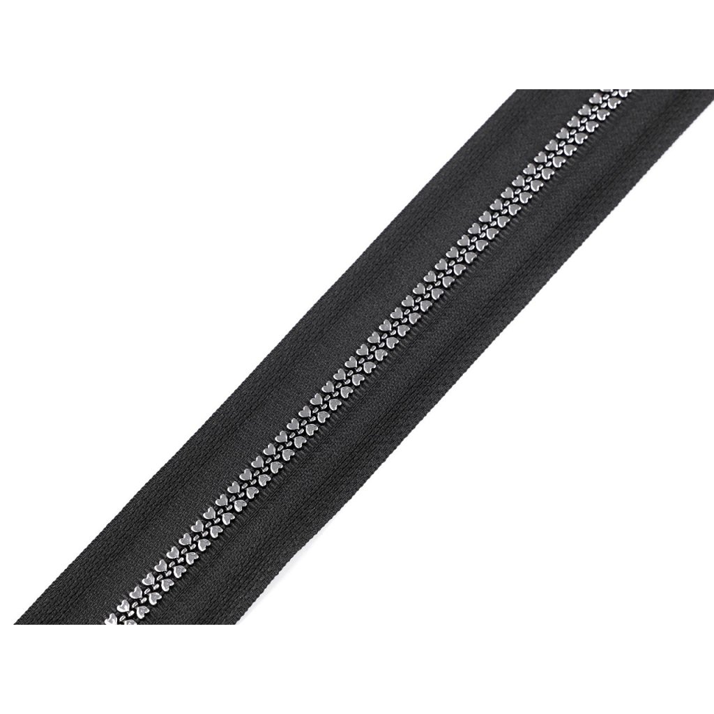 Kostěný zip v metráži má efektní designové zoubky. Využijete ho na oděvy (mikiny, bundy, kabátky), kabelky, pouzdra nebo na výrobu zipových tašek.