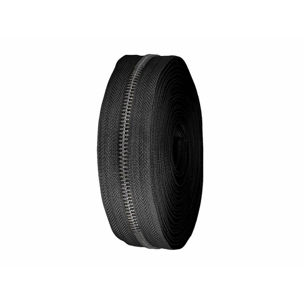 Kovový zip v metráži má všestranné využití. Hodí se na výrobu stanů, spacáků, kufrů, batohů, pouzder, tašek, kabelek, mikin apod. Titanové zoubky jsou pevné a odolné.