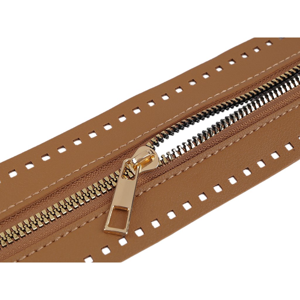 Zip vsazený do podkladu z eko kůže využijete na kabelky, tašky, pouzdra i batohy. Je vhodný na šité, pletené i háčkované výrobky. Můžete ho použít jako hlavní zapínání nebo na vnitřní a boční kapsy.