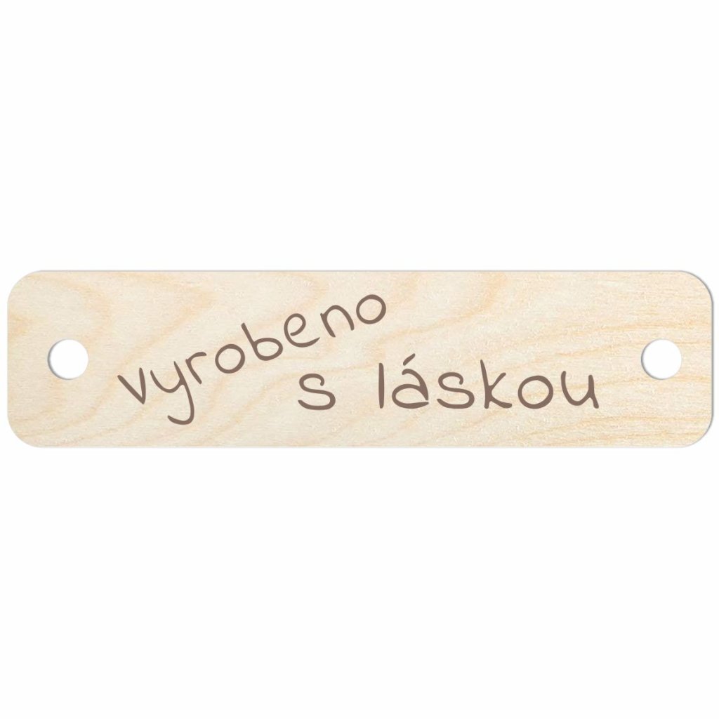 Dřevěná značka s vytištěným nápisem " Vyrobeno s láskou " na označení vašich hotových výrobků. Je vyrobena z březové překližky tl. 3 mm.